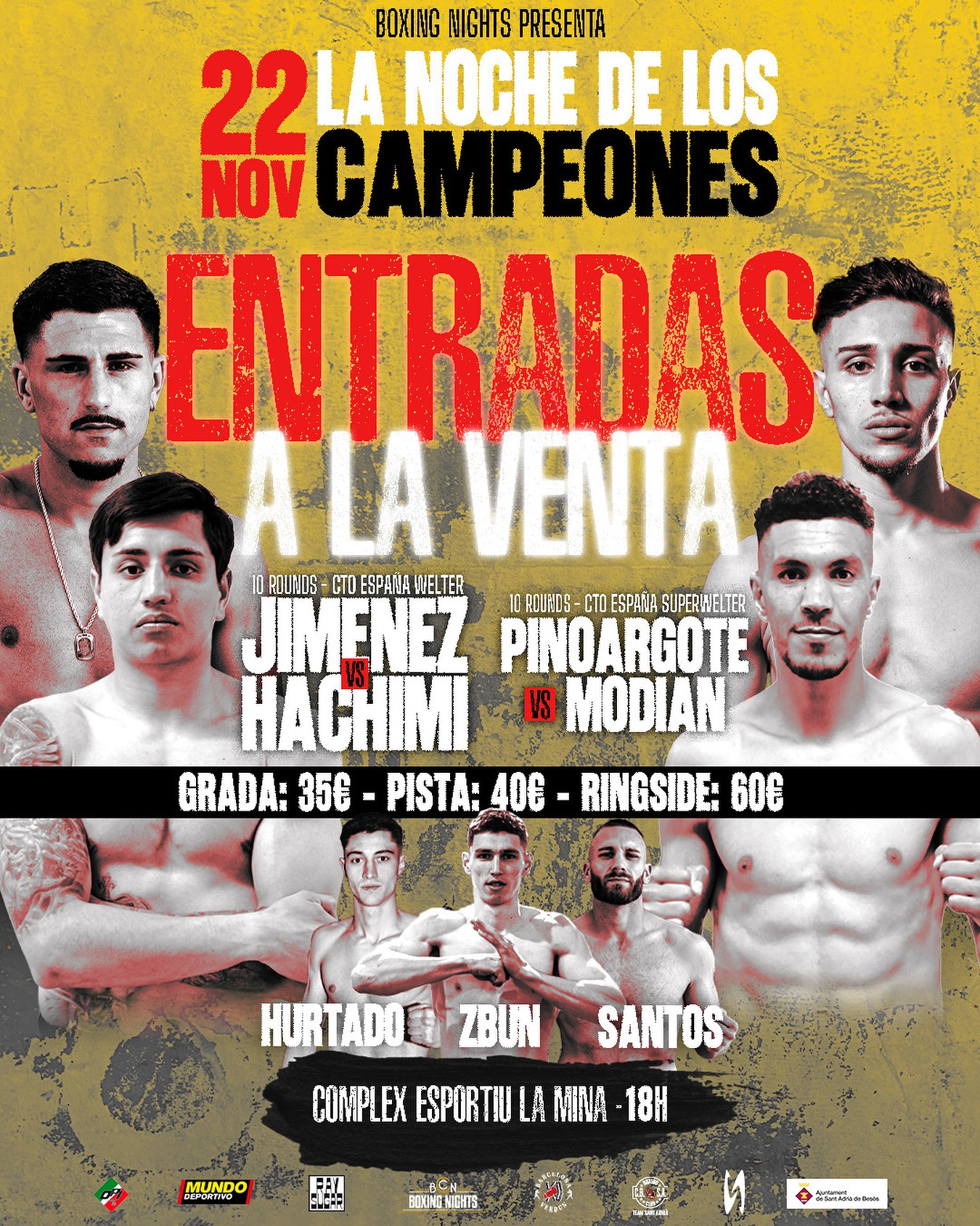 En la pelea principal, Ethan Jiménez y Amin Hachimi se enfrentan por el título Welter, mientras que Sebastián Pinoargote busca el cinturón Superwelter ante Ali Modian. El público también vivirá el esperado regreso de Víctor Hurtado, junto a Rafa Santos, Artur Zbun y las jóvenes promesas del boxeo nacional. Una noche de boxeo del más alto nivel.